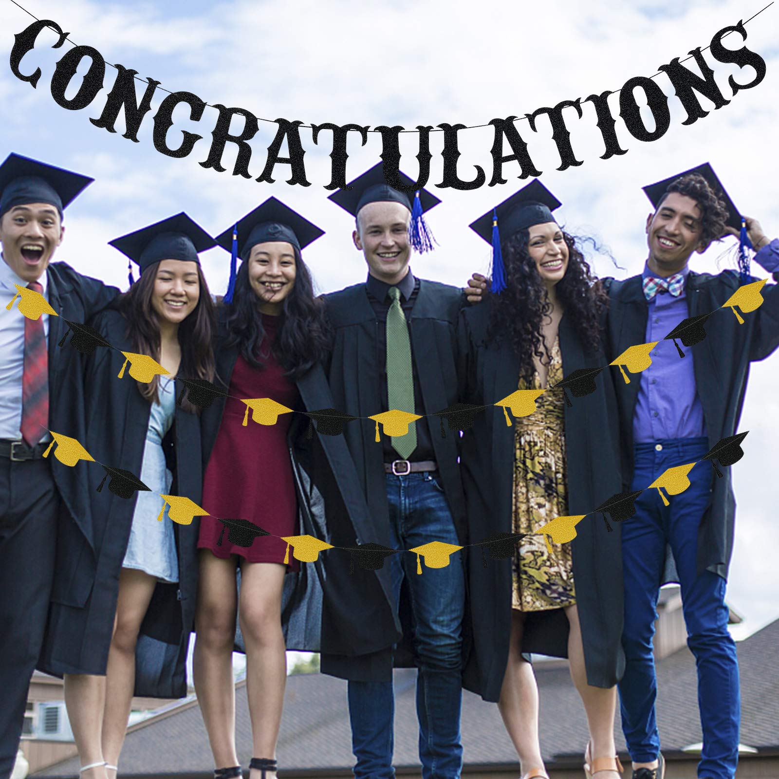 Amazon Com Graduation Decorations 2022 Black And Gold Black Glitter Congratulations Banner And Gold Black Glitter Graduation Cap Banner Congratulations Decorations For Graduation Wedding Anniversary Retirement Party Decorations Supplies Toys